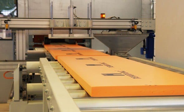 Mousse de polystyrène extrudé comme isolant, produite sous forme de plaques.