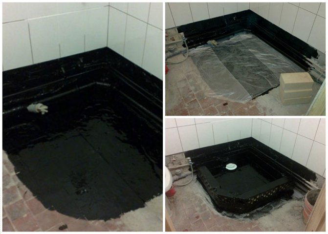 Toute imperméabilisation de douche est effectuée pendant une longue période, et c'est l'une des principales exigences. Ainsi, la base de l'imperméabilisation du revêtement est un mélange de bitume ou de mastic avec du caoutchouc ou du mastic polymère-bitume. Le nom commun de ces composés est le caoutchouc liquide. Ses avantages sont les suivants: