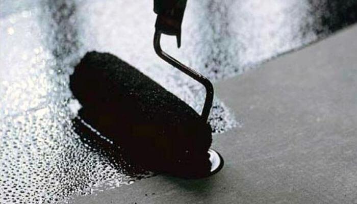 - Mastic bitumineux. Tout d'abord, le mélange doit être soigneusement mélangé, puis versez un peu de kérosène dedans. Les joints entre le mur et le sol sont enduits de mastic, ainsi que les endroits d'où sortent les tuyaux. Appliquer au pinceau ou au rouleau. Mais ce n'est qu'après ce processus que les outils peuvent être jetés, car il est peu probable qu'ils soient lavés. Pour obtenir un effet maximal, vous devez enduire le sol deux fois.