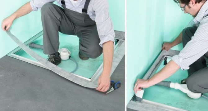 Le principe de base de l'imperméabilisation d'une douche sans bac et d'une cabine de douche avec bac est que l'humidité sur le sol et dans l'air ne doit pas s'accumuler, mais doit trouver une issue (drain). Par conséquent, tout d'abord, une cabine de douche est équipée. Le drain est le corps lui-même, la grille de drainage et le siphon avec un coude, ce qui garantit un verrouillage d'eau permanent qui ne permet pas les odeurs désagréables du réseau d'égouts.