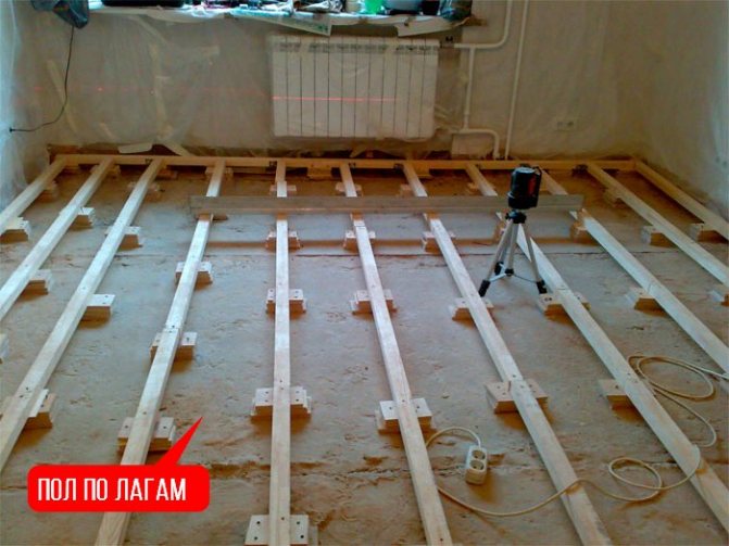 L'isolation du sol le long des bûches peut également être réalisée avec un matériau moins cher - le polystyrène, car la charge principale dans ce cas tombera sur les éléments structurels en bois.
