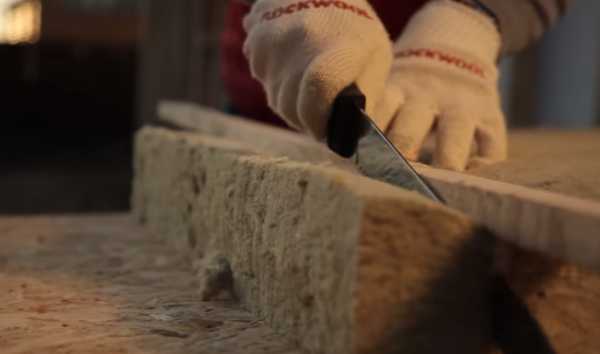 Dans la vidéo - couper la laine minérale avec un outil spécial.
