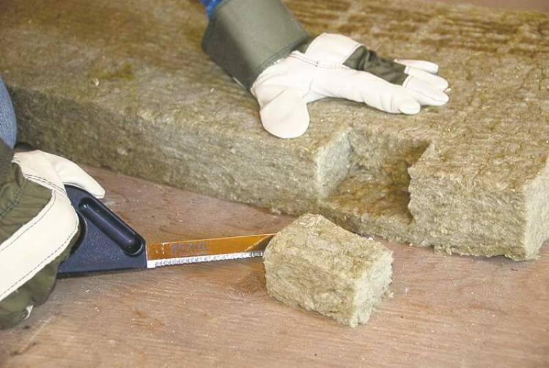 - il est préférable de couper l'isolation par temps froid, car pour le travail, il est nécessaire de porter une combinaison de protection en tissu dense, qui empêchera le contact de la peau avec les fibres de laine minérale et son irritation;