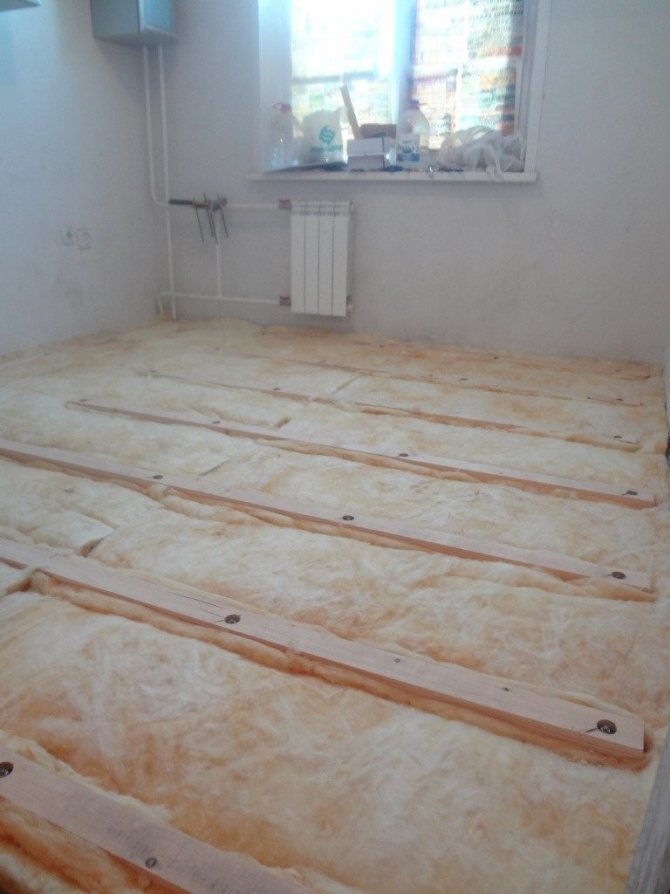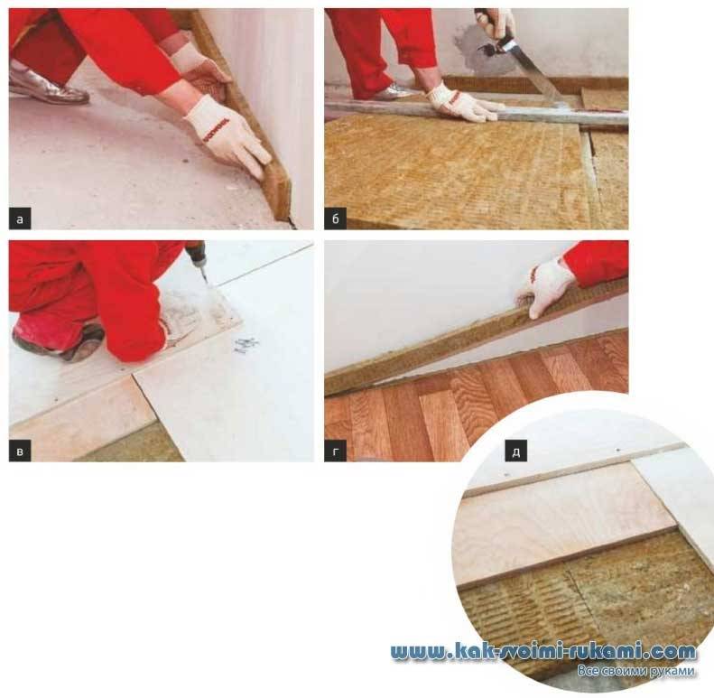 La technologie d'isolation varie considérablement en fonction de la forme d'isolation. Pour les isolants en vrac et carrelés, il est nécessaire de construire une structure à partir de rondins ou d'une chape. Les matériaux en rouleau servent de substrat pour le stratifié, le linoléum ou le parquet. Dans certains cas, le linoléum peut également servir d'isolant.