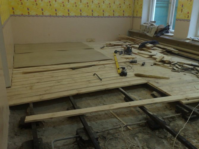 - Le sous-plancher est préparé en enlevant tous les anciens revêtements. Les fentes et les rainures sont scellées avec une solution préparée à partir d'un mélange sec. Pour cela, vous pouvez utiliser "Remstream-T".