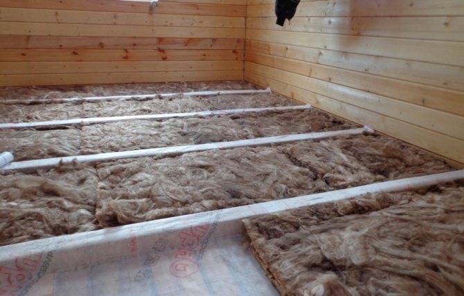 Une caractéristique de ce type d'isolation est le contact des bûches, du sol et de l'isolation thermique avec le sol, et parfois avec les eaux souterraines. Cette nuance impose certaines exigences au matériau isolant thermique - il doit être hydrofuge, non sujet à la pourriture et pour une protection supplémentaire, il est recouvert d'un pare-vapeur et hydro.