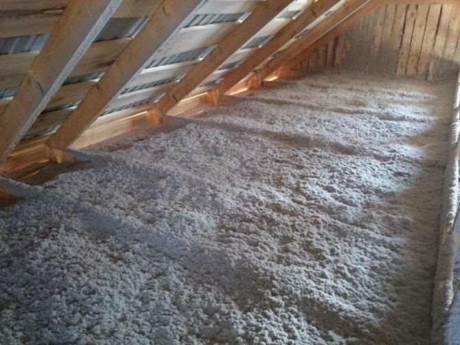 Le plus petit espace est requis pour le liège, le polyuréthane pulvérisé et les composés de remplissage de polyuréthane. En règle générale, l'argile expansée est saupoudrée entre les bûches dans les planchers en bois, l'épaisseur de la couche isolante est d'environ 10 cm.