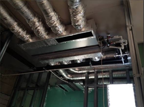 - Unités de ventilo-convecteurs à conduit. Ce type d'unité est intégré dans les conduits de ventilation d'alimentation. Seule la grille de ventilation est visible pour le consommateur depuis l'ensemble du système. L'équipement lui-même et les communications sont cachés dans le canal d'approvisionnement.