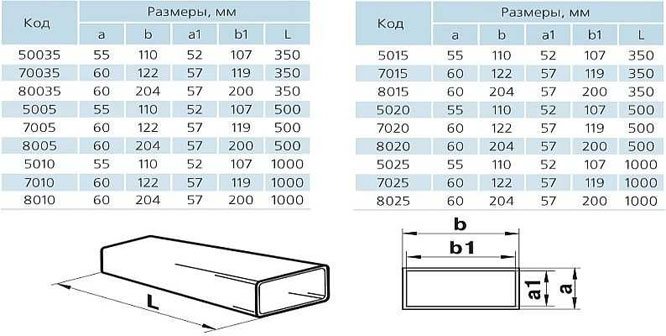 Sur le marché intérieur des matériaux de construction, des conduits de ventilation en plastique d'un diamètre de 10 à 20 cm sont présentés. Pour les conduits de ventilation rectangulaires, les dimensions les plus courantes vont de 10 x 5,5 cm à 20,4 x 6 cm. peut être fait des tuyaux et de plus grand diamètre.