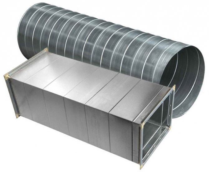 Les structures rondes et rectangulaires se distinguent par leur forme géométrique. L'avantage de la première option est qu'il n'y a pas de risque d'écoulement tourbillonnaire. Le niveau de bruit est plus faible ici. Ce type de conduit est plus souvent utilisé dans les locaux industriels.