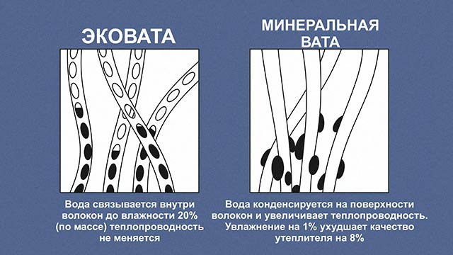 De plus, ce qui compte, c'est la composition du matériau. Les experts confirment que les fibres synthétiques ne peuvent être garanties plus de 35 ans. Pendant ce temps, ils se dessèchent et s'effondrent. Mais surtout, ils perdent la moitié de leurs propriétés d'économie de chaleur. Alors que les fibres naturelles ne perdent pas leurs qualités d'origine et peuvent servir plus longtemps.