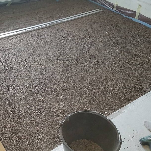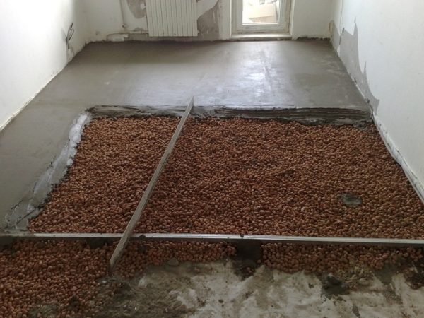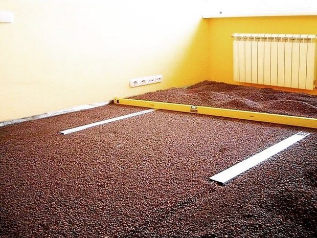 Ces sols peuvent être installés dans des locaux techniques ou des garages. Mais l'oreiller en argile expansée n'est pas posé directement sur le sol. La procédure est la suivante: