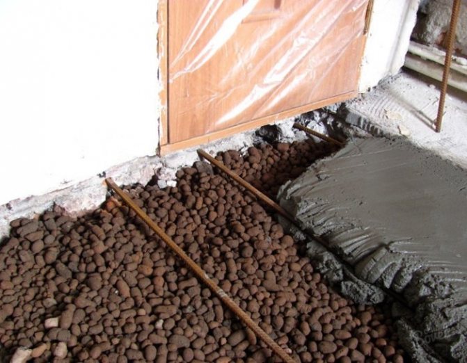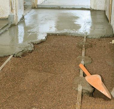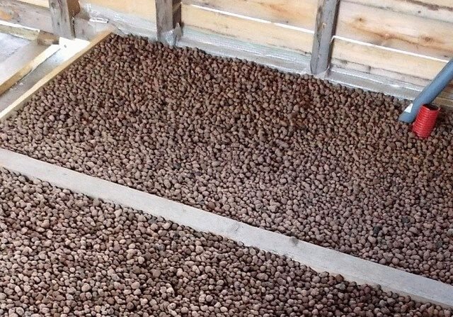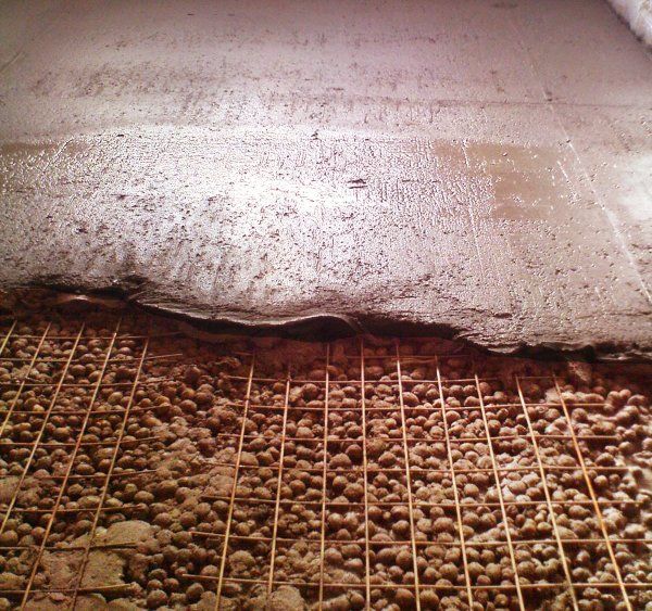 Si une base en béton est censée être installée sous des planches de plancher, un tel plancher peut être isolé en "noyant" de l'argile expansée dans une chape en béton: