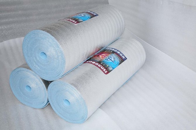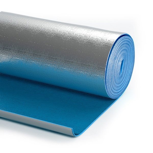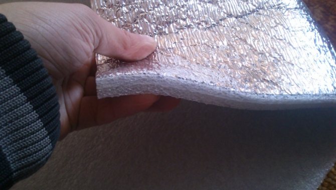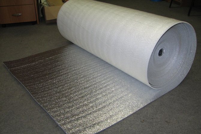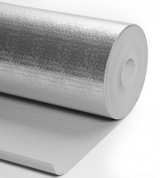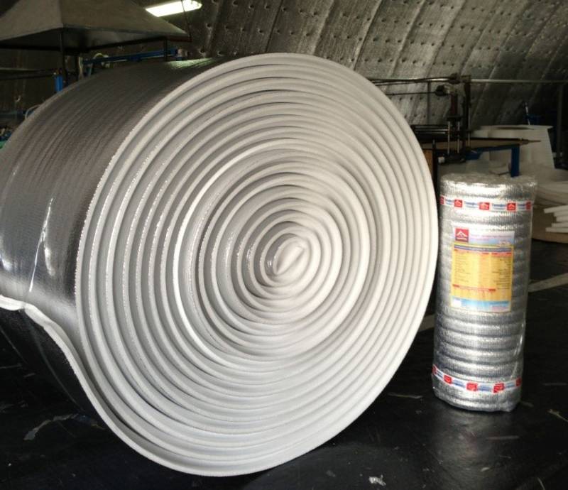 La majeure partie du matériel est mousse de polyéthylène... Dans ce cas, les pores formés dessus sont fermés et remplis d'air. Une telle mousse de polyéthylène est utilisée sous forme d'écheveaux avec différentes densités, épaisseurs et différentes structures internes. Sur un ou sur les deux côtés, en fonction de la destination du matériau, le polyéthylène est recouvert d'une feuille d'aluminium. Avant l'application, il est traité et poli à un brillant élevé avec une réflectivité maximale (jusqu'à 97% et même plus). Le plus souvent, la feuille est appliquée par thermosoudage, ce qui permet une meilleure adhérence du matériau.