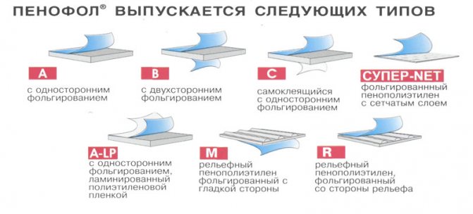 Le tepofol est produit en plusieurs variétés, marquées des symboles: A, B, C. La principale différence entre les appareils de chauffage de différents groupes est l'épaisseur de la couche de polyéthylène et sa structure, ainsi que le nombre de couches métallisées.