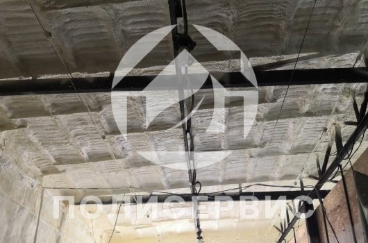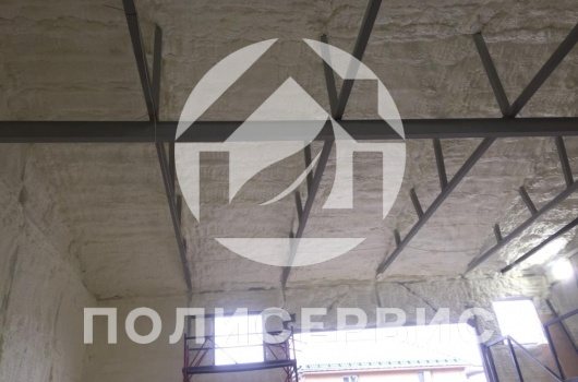 Isolation du stockage de légumes, hangar, installations de stockage la mousse de polyuréthane est réalisée par pulvérisation. Lorsque la mousse de polyuréthane est appliquée sur les murs ou les plafonds, elle reste à l'état liquide pendant un certain temps, s'étale uniformément sur une surface isolée, remplissant complètement toutes les micro-cavités et fissures, après quoi une mousse active se produit.