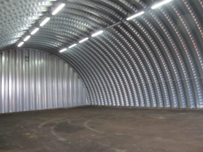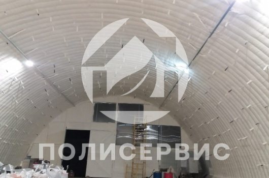 Le cadre métallique est recouvert d'un auvent non seulement de l'extérieur, mais également de l'intérieur. Le coussin d'air formé vous permet de rester au chaud. Pour le fonctionnement du bâtiment dans des conditions plus sévères, un appareil de chauffage est utilisé dans l'espace inter-auvent.