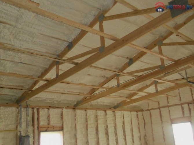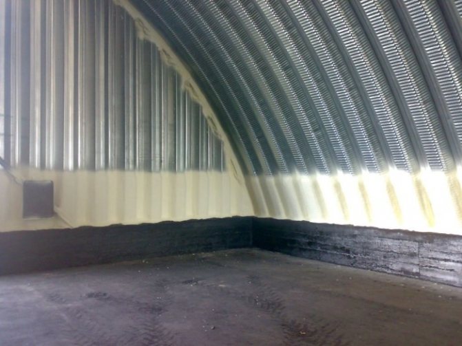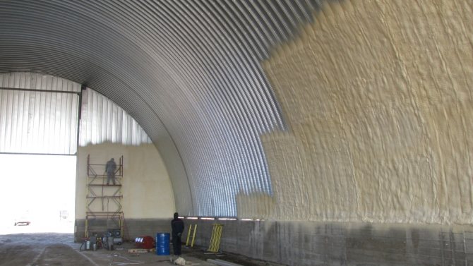 - À cadre de hangar il n'est pas nécessaire de fixer une couche d'isolation - la pulvérisation est effectuée directement sur le cadre, car la mousse de polyuréthane a une adhérence très élevée à l'acier;