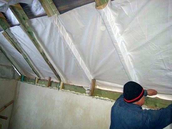 Lors de l'isolation d'un grenier existant, les travaux sont généralement effectués de l'intérieur en direction du toit. Pour cela, la partie du toit qui doit être isolée est d'abord préparée. Il est nettoyé et séché. Ensuite, le film pare-vapeur est posé. Dans le même temps, il convient de veiller à ce qu'il reste un espace d'au moins 2 cm entre le film fixe et le lattage du toit, ce qui exclura la formation de condensation et la dégradation indésirable des matériaux utilisés pour l'isolation et la finition du toit du grenier.