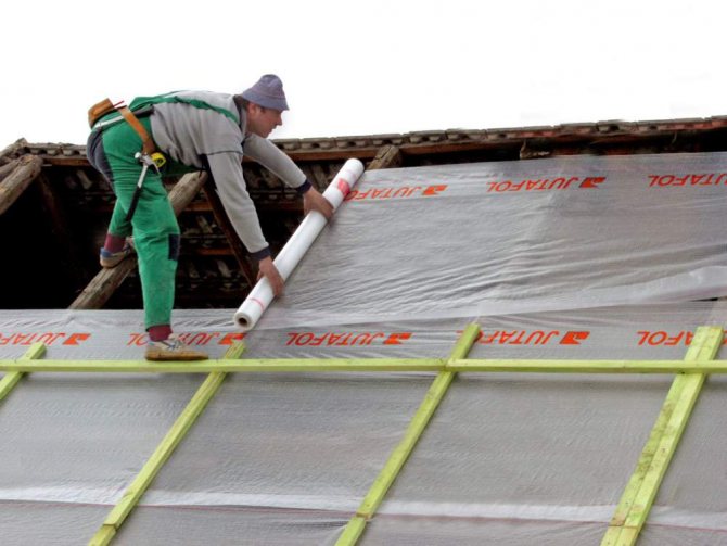 En tant qu'imperméabilisation, des films de membrane spéciaux ou un matériau de toiture ordinaire sont utilisés, ce qui permet aux vapeurs de passer.