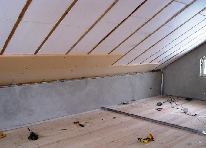 - Les pentes du toit du grenier sont isolées avec du polystyrène d'une densité de 15 kg/cu. m de haut, près de 100 mm.