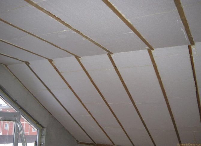 Après cela, le toit est directement isolé avec de la mousse. Les plaques en mousse sont fixées de l'une des manières disponibles.