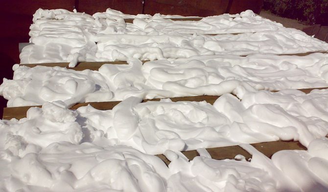 En apparence, l'isolation thermique ressemble à une guimauve qui, après durcissement, se transforme en une masse élastique qui est garantie de combler tous les vides.
