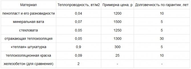 Comme vous pouvez le voir, l'arbre à partir duquel les maisons de campagne sont construites est 4 à 5 fois inférieur au polystyrène en termes de degré d'isolation. Et en termes de légèreté, la mousse est supérieure à presque tous les autres matériaux d'isolation thermique.