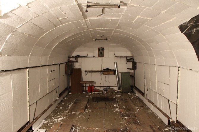 Production: isolation du garage de l'intérieur polystyrène expansé - une option peu coûteuse pour la finition des murs extérieurs.