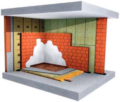 En particulier, les murs et les plafonds y sont isolés. En outre, la laine minérale est utilisée pour isoler les fours, les pipelines, qui ont une température élevée, car ce matériau est incombustible.