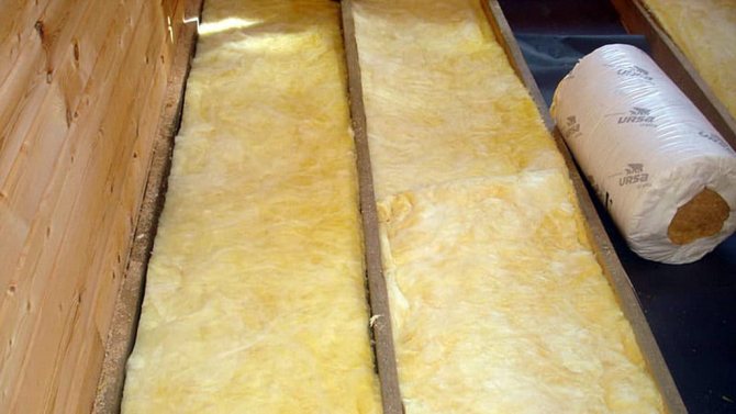 La laine minérale pour l'isolation du sol doit être située entre les bûches. Il s'adapte parfaitement à leur surface latérale, évitant les espaces.