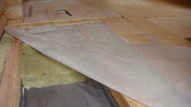 Après avoir vérifié l'absence d'espaces et l'ajustement serré de l'isolant thermique à la surface du sous-plancher, vous pouvez commencer à installer le film pare-vapeur. L'installation d'un matériau complètement scellé n'est pas autorisée - si de l'humidité pénètre dans la structure de la laine de basalte, il faut s'assurer qu'elle s'échappe à travers la couche pare-vapeur et l'espace de ventilation.