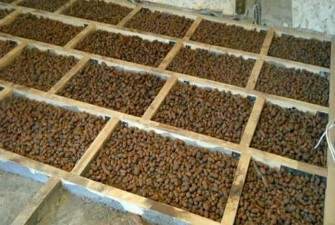 Quant à l'argile expansée, elle est simplement éparpillée sur la surface du parquet, après avoir comblé les éléments contraignants sur le pourtour de ce dernier. Il peut s'agir des mêmes lattes, empilées verticalement sur trois rangées. L'épaisseur de la couche d'argile expansée de 150 mm est plus que suffisante.