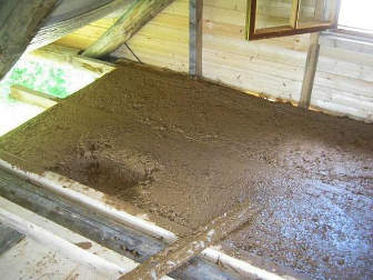 Après la préparation du revêtement, un film pare-vapeur est posé sur lequel une solution d'argile et de sciure de bois est appliquée (épaisseur de couche 10-15 cm). Dans un premier temps, il est nécessaire de contrôler le séchage de la solution. Toutes les fissures doivent être remplies d'argile.