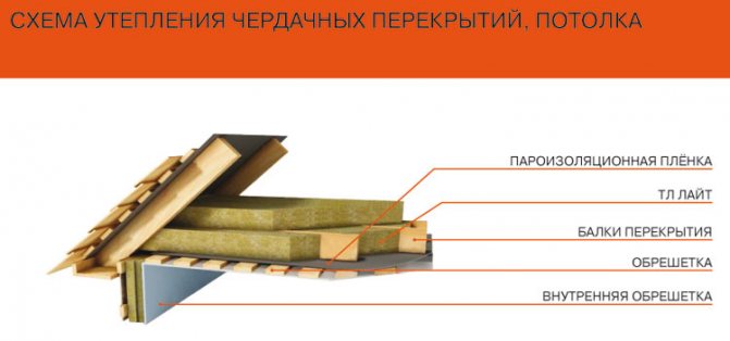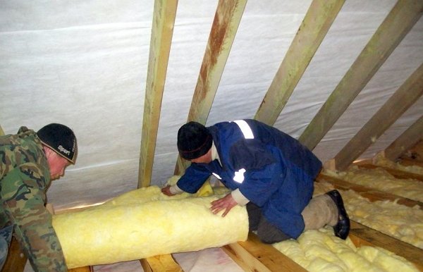 L'isolation thermique de la maison de l'intérieur avec de la laine minérale est réalisée en posant le matériau entre les chevrons