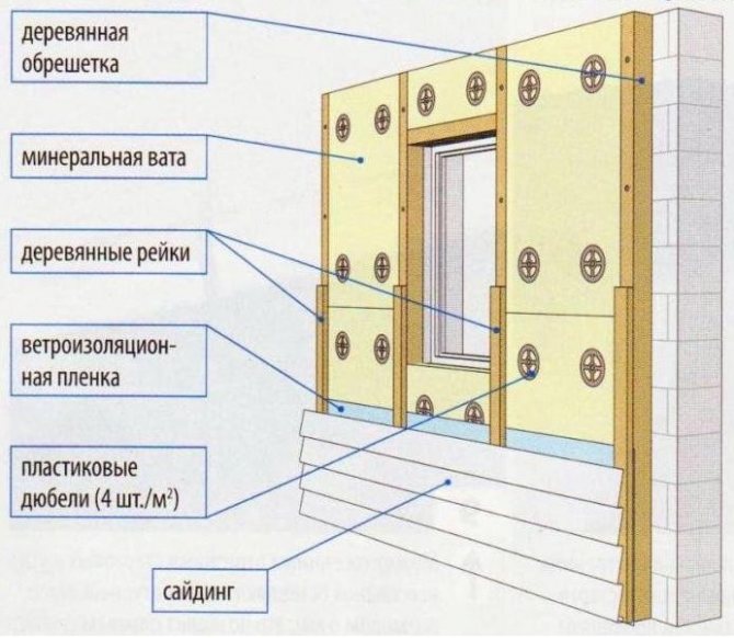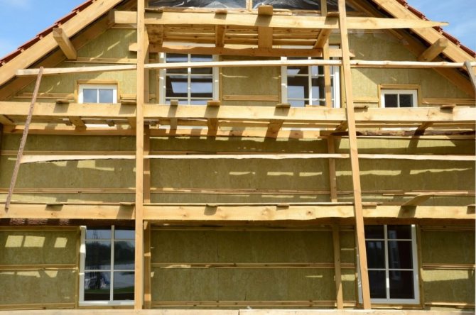 L'isolation peut être installée dans deux options: façade ventilée et à charnière. La base d'une telle façade est un cadre constitué d'un profilé ou de lattes de bois. Pour une isolation de haute qualité, l'épaisseur de la laine minérale doit être d'au moins 10 centimètres.