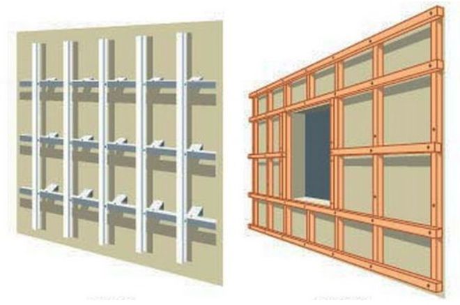 En fait, il existe deux façons d'isoler les murs à l'extérieur avec de la laine minérale pour le revêtement - sur des barres en bois et sur des guides métalliques. Le choix des guides dépend le plus souvent des capacités financières du propriétaire.