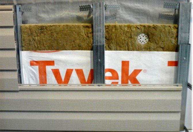Il est à noter que l'isolation d'une maison en bois pour le revêtement peut être réalisée à l'aide d'un profilé métallique ou de lattes en bois. Mais le principe de montage est pratiquement le même. Par conséquent, les outils et les matériaux de fixation sont sélectionnés en fonction de la caisse utilisée. Un ruban de butyle est collé entre les joints de la membrane, qui est installée sur la laine minérale.