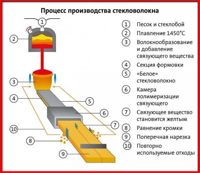 L'isolant en laine de verre est un matériau respectueux de l'environnement, il est fabriqué à partir des restes de la production de verre. Comme vous le savez, le verre est constitué de sable, qui est absolument inerte chimiquement, de sorte que l'isolation thermique n'entre dans aucune réaction chimique. Sa densité est assez faible et, par conséquent, le poids d'un mètre cube est également faible.