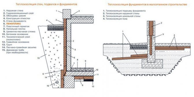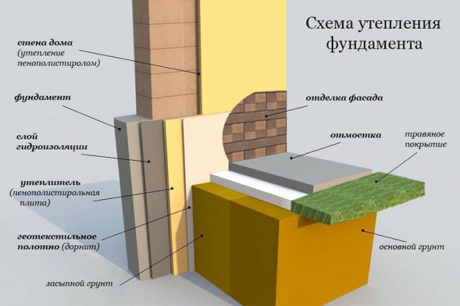 Important. Dans tous les cas, l'isolation des surfaces extérieures de la fondation avec du polystyrène expansé doit exclure le contact du matériau avec le sol.