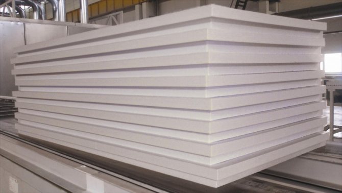 La mousse de polystyrène pressée est produite par pressage à base de latex polychlorure de vinyle avec addition d'un agent gonflant. La structure cellulaire fermée a déterminé la haute densité du matériau et sa résistance aux contraintes physiques. Il absorbe pire l'humidité, a des propriétés d'isolation électrique.